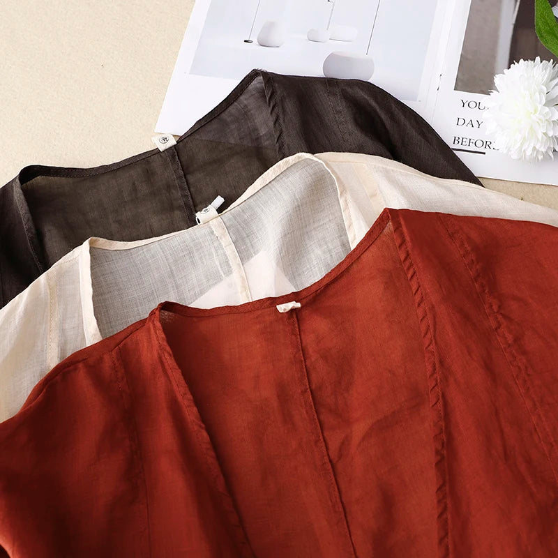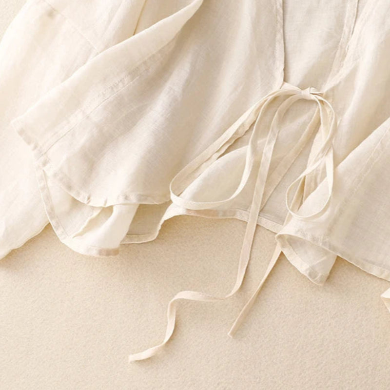 Soft and airy, this kimono-style blouse is crafted from breathable cotton-linen with a relaxed drape and elegant tie-front finish. Lightweight and breezy, it's the perfect throw-on layer for warm days, beach outings, or casual weekends.