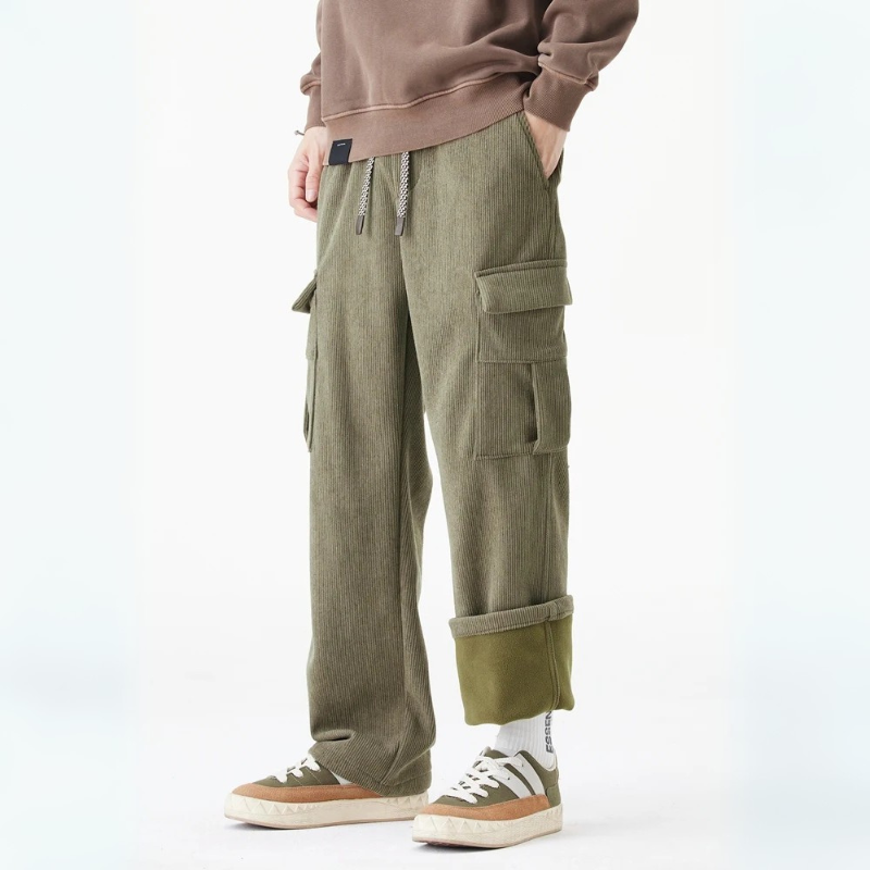 Timeless corduroy meets modern warmth in these fleece-lined cargo pants. Designed with a straight-leg cut and relaxed fit, they’re a winter wardrobe essential for any occasion.