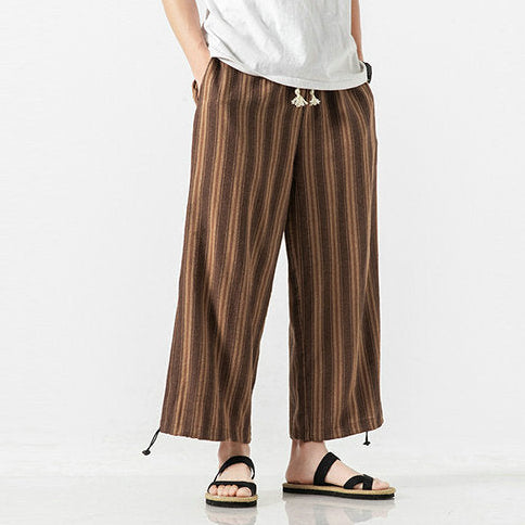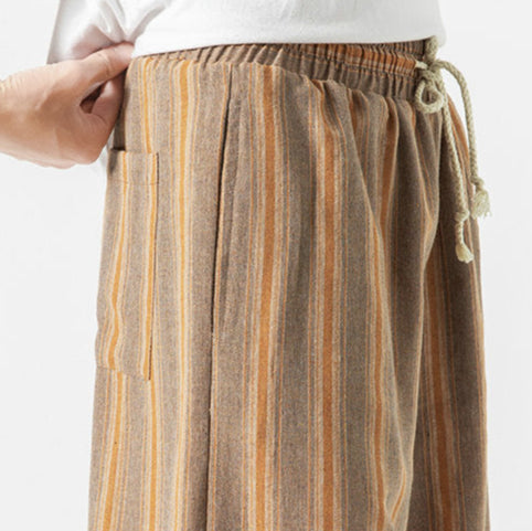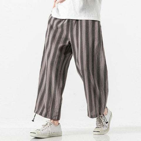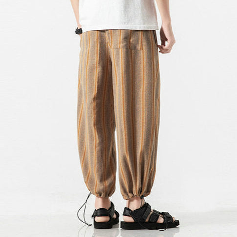 Blending comfort with streetwear edge, these harem pants feature a relaxed fit and breathable cotton-linen fabric. A drawstring waistband ensures all-day ease, making them a go-to for spring and summer.