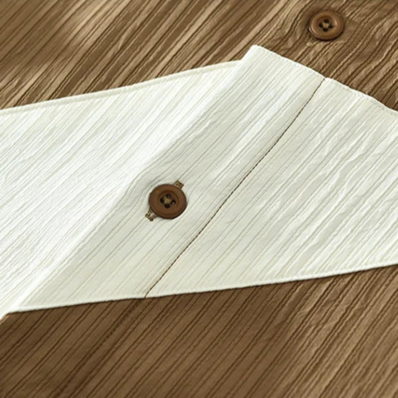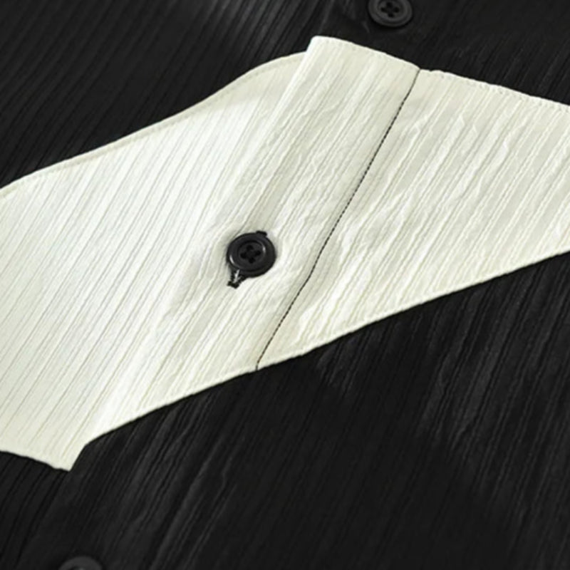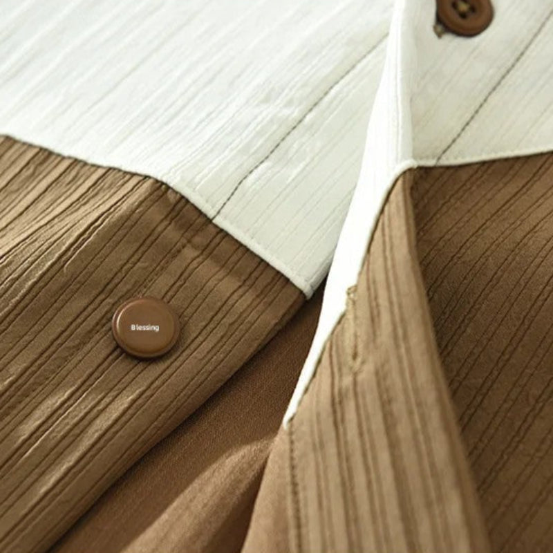 Crafted from premium lightweight fabric, this shirt features a uniquely textured weave and bold geometric patchwork that give it a distinct, artistic look.