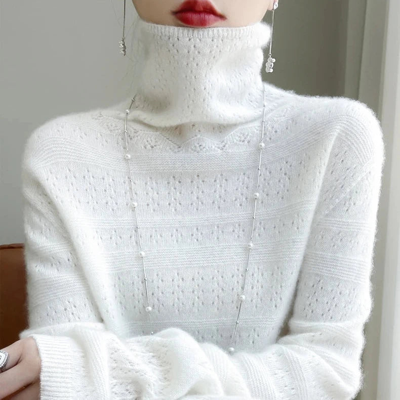 Crafted from 100% premium merino wool, this sweater offers weightless warmth with a luxurious touch. The stacked collar, subtle patterns, and fine detailing create a refined look that drapes beautifully for effortless confidence in cooler seasons.