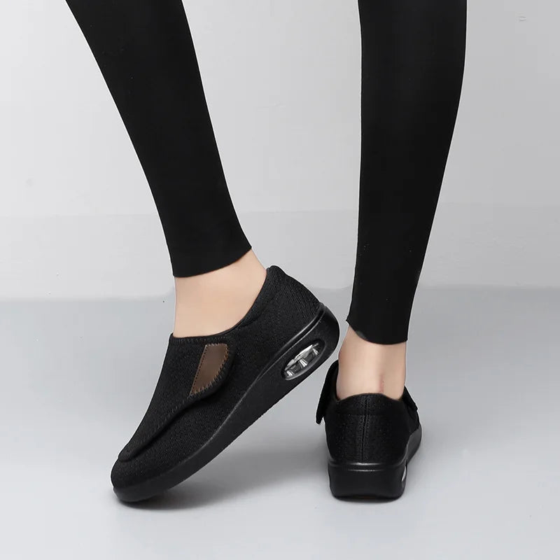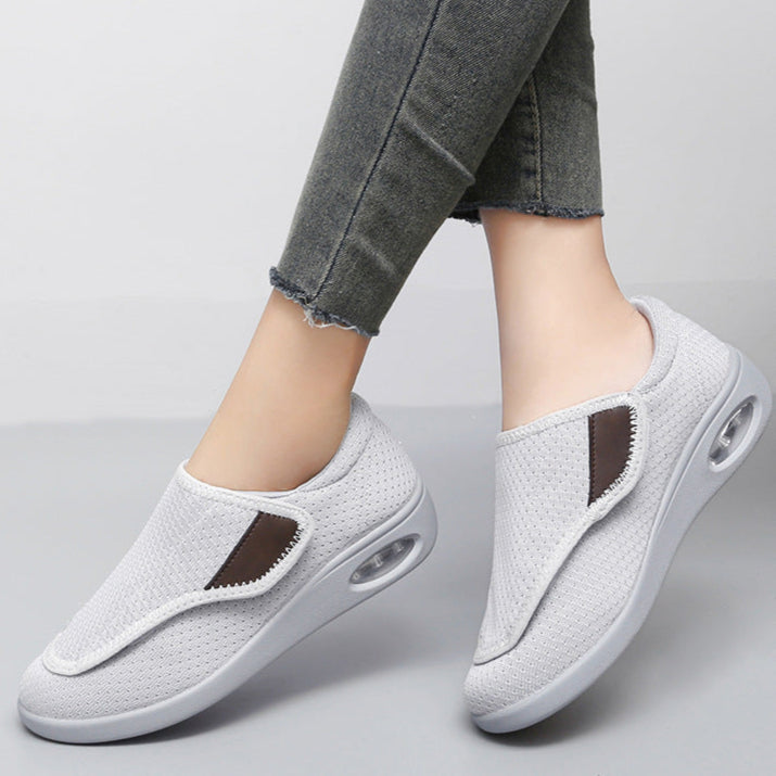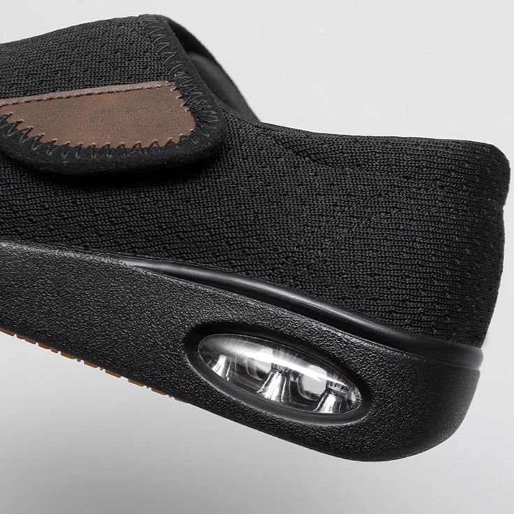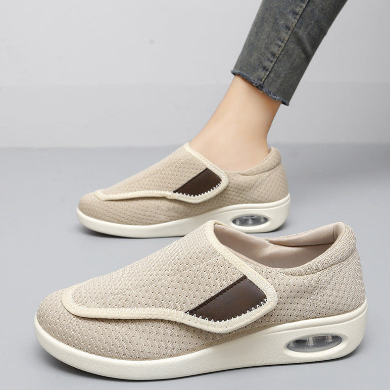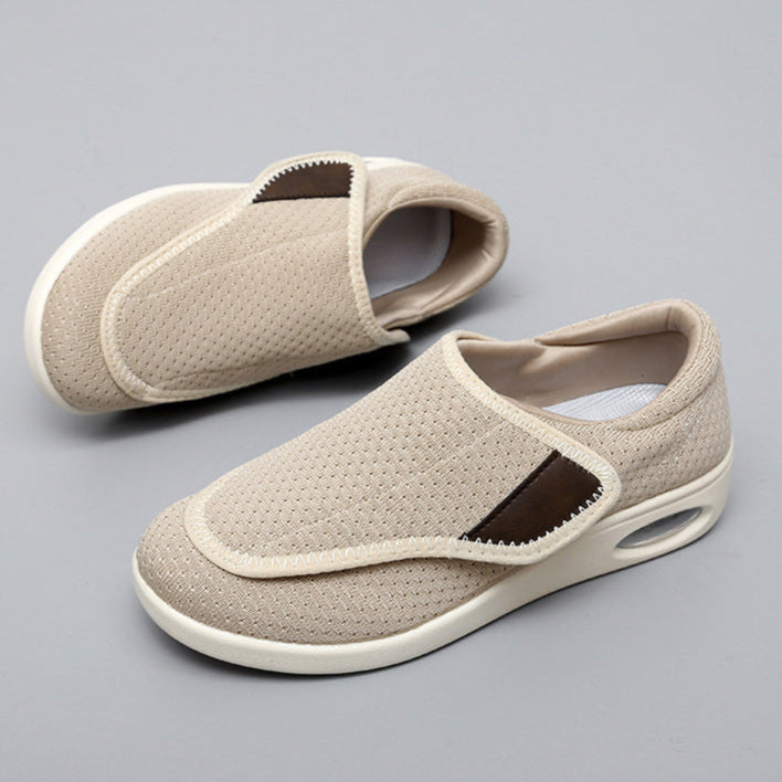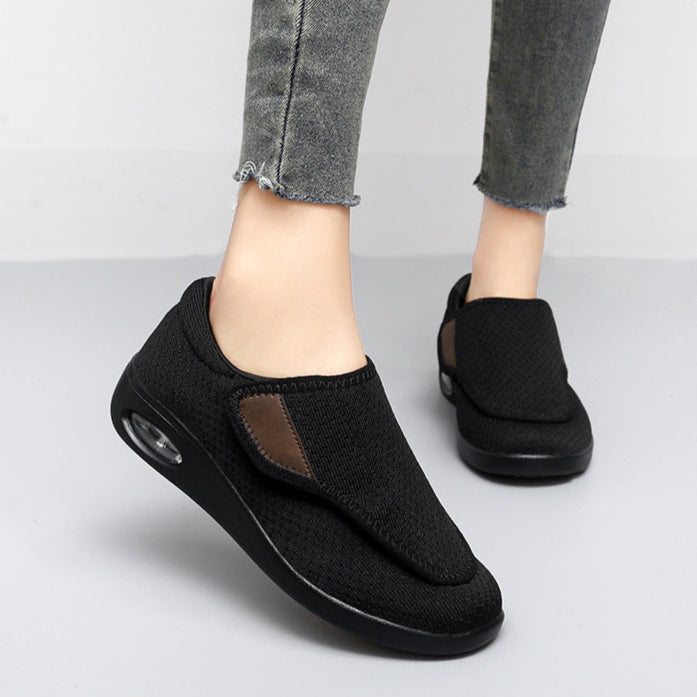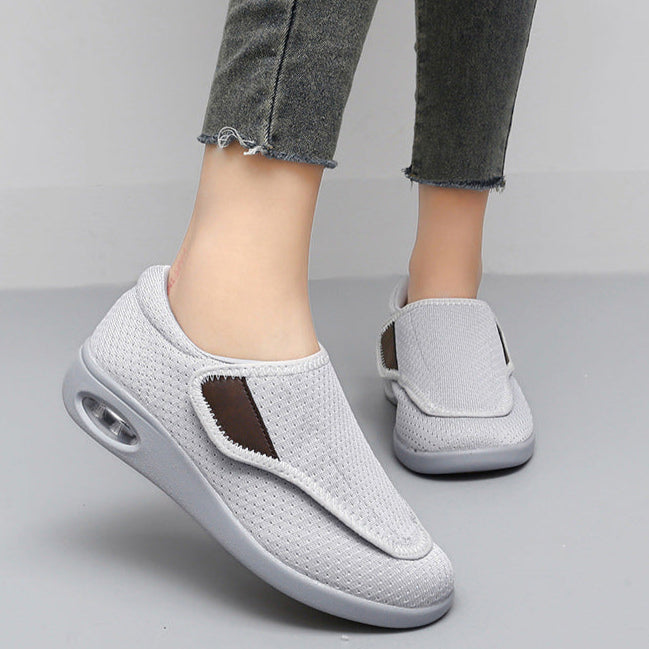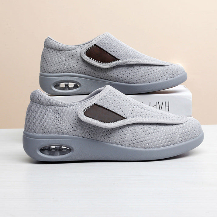 Designed for swollen, sensitive, or wide feet, these shoes feature a stretch-knit upper and adjustable closure for a secure, easy fit. The air-cushioned sole absorbs impact with every step, offering lightweight comfort for daily wear, home use, or outdoor walks.